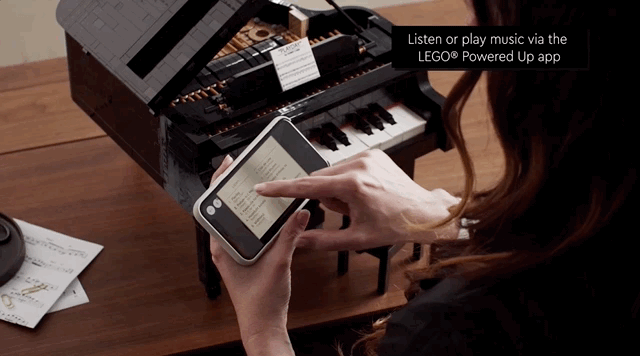 像电影《钢的琴》一样,我完全可以按照说明书按图索骥,用2798块乐高积木,自己DIY组装完成一架mini钢琴!完成之后,连接LEGO Powered Up,它会自动演奏。或者我可以打开琴谱,开始瞎弹乱奏。