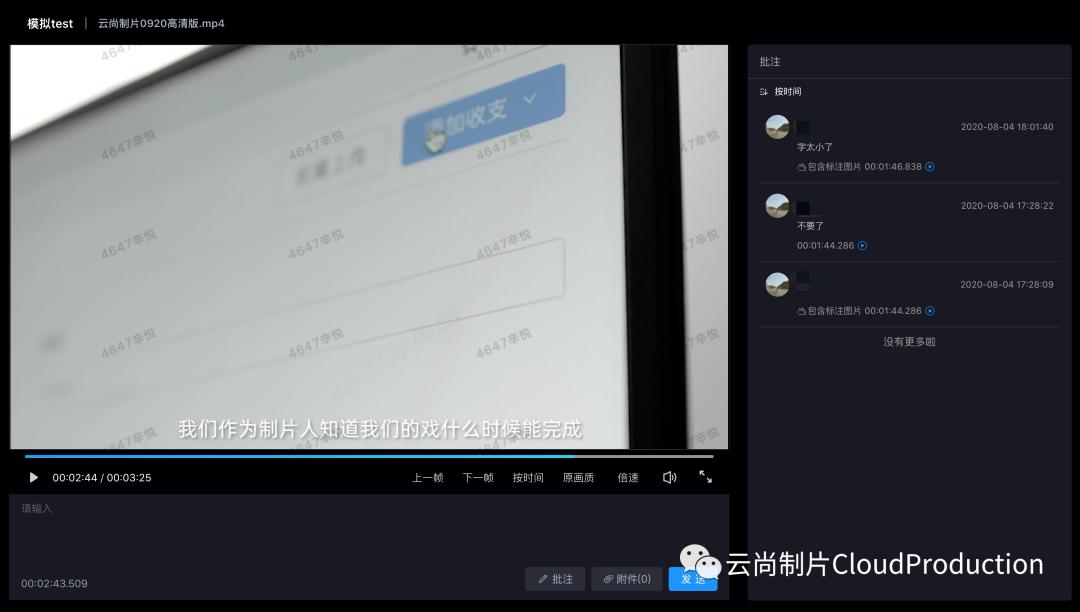 而在今年疫情爆发后,云尚制片系统推出的看片、审片功能也为许多异地拍摄和看片的公司带来了便利。