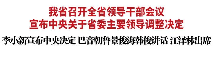 今天,我省召开全省领导干部会议。中央组织部副部长李小新出席会议并宣布中央决定:景俊海同志任吉林省委书记,巴音朝鲁同志不再担任吉林省委书记、常委、委员职务;韩俊同志任吉林省委委员、常委、副书记。巴音朝鲁主持会议并讲话,景俊海、韩俊讲话,省政协主席江泽林出席。巴音朝鲁在讲话中说,我完全拥护、坚决服从中央的决定。这次吉林省委主要领导调整,充分体现了以习近平同志为核心的党中央对吉林工作的亲切关怀,体现了对吉林领导班子的高度重视、对吉林工作的充分肯定和对吉林干部的信任厚爱。衷心希望全省各级领导班子、广大干部群众全力支持景俊海同志的工作。我深信,在以习近平同志为核心的党中央坚强领导下,在以景俊海同志为班长的省委直接带领下,吉林各项工作一定能够做得更好,一定能够加快实现全面振兴全方位振兴的奋斗目标。