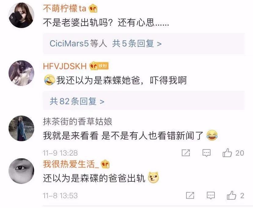 前两天,“田亮怒斥妻子出轨”话题冲上热搜,吃瓜群众纷纷跑到森碟老爸微博下站队围观: