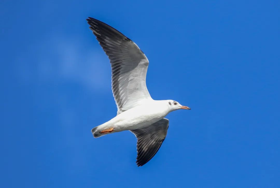 棕 头 鸥棕头鸥是中型水鸟,体长41-46cm。嘴、脚深红色;夏羽头淡褐色,在靠颈部具黑色羽缘,形成黑色领圈;肩、背淡灰色,腰、尾和下体白色;外侧两枚初级飞羽黑色,末端具显著的白色翼镜斑;其余初级飞羽基部白色,具黑色端斑,飞翔时极明显;冬羽头、颈白色,眼后具一暗色斑,其余和夏羽相似。