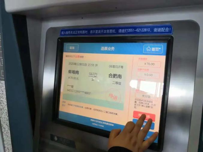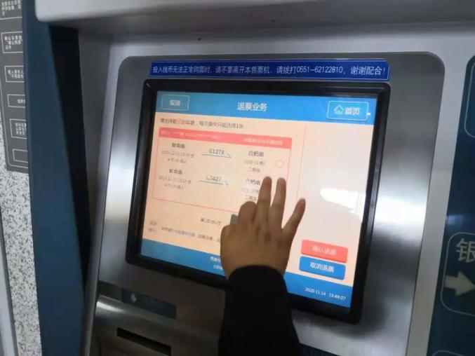 在自助售取票机上操作退票十分简单,只需简单三步,就可以快捷完成退票操作。