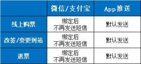 线上购票、改签/变更到站、退票,不再发送短信通知,改为默认发送铁路12306App通知,旅客也可以选择绑定微信或支付宝接收通知。