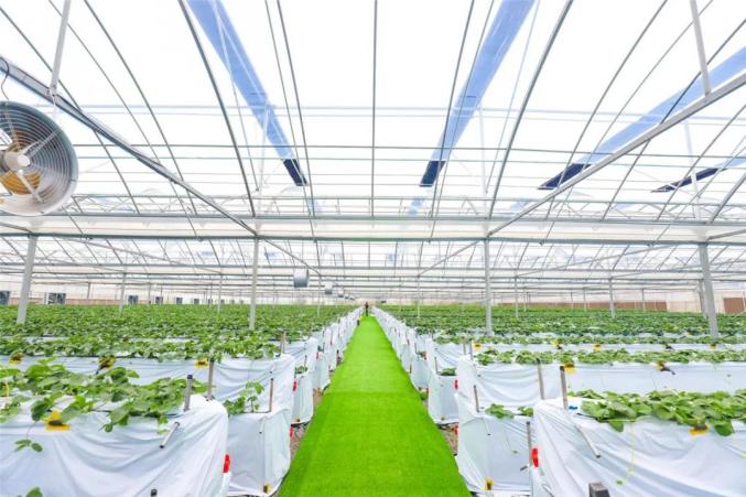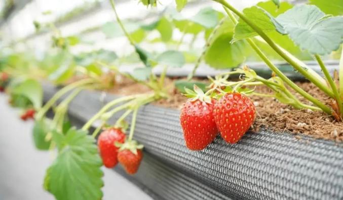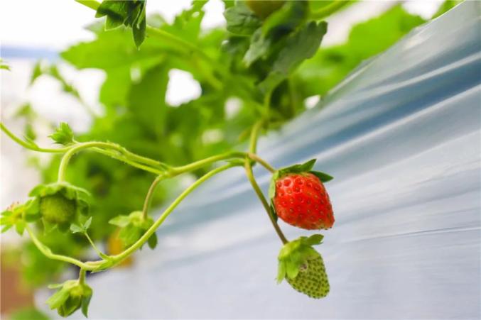相比于传统的草莓种植,傅家边精品草莓园采用了立体草莓种植技术。这种架式栽培的方式提高了空间使用率,草莓架间隔宽敞,地上铺着防水膜,种植采摘更方便,很大程度上也节省了人工成本。同时,这些高架设施由渗水膜、防虫网和保温布组成,并装有升降温系统,为空中草莓量身定制了生长环境。