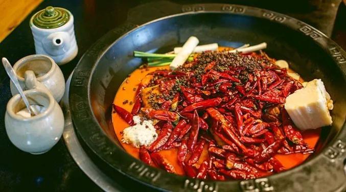 重庆火锅,又称为毛肚火锅或麻辣火锅,起源于明末清初的重庆嘉陵江畔、朝天门等码头船工纤夫的粗放餐饮方式,原料主要是牛毛肚、猪黄喉、鸭肠、牛血旺等。最初一般挑担子零卖小贩将水牛毛肚买后,洗净煮一煮,而后将肝子、肚子等切成小块,于担头置泥炉一具,炉上置分格的大铁盆一只,盆内翻煎倒滚着一种又麻又辣又咸的卤汁,于是河边桥头一般卖劳力的朋友,便围着担子受用起来。各人认定一格且烫且吃,吃若干块,算若干钱,既经济,又能增加热量……