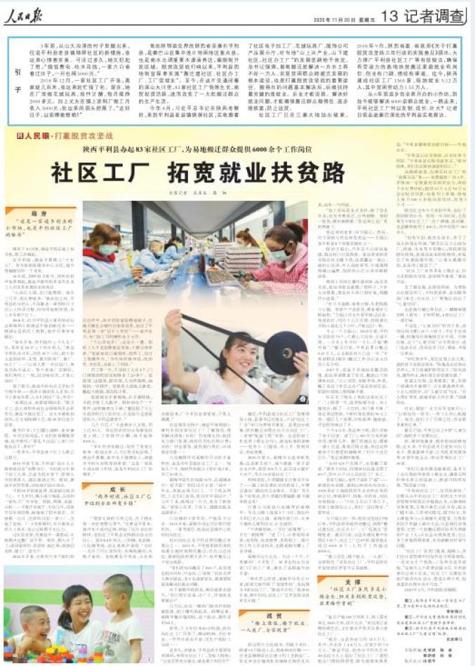 原标题:《《人民日报》聚焦报道平利社区工厂助脱贫!》