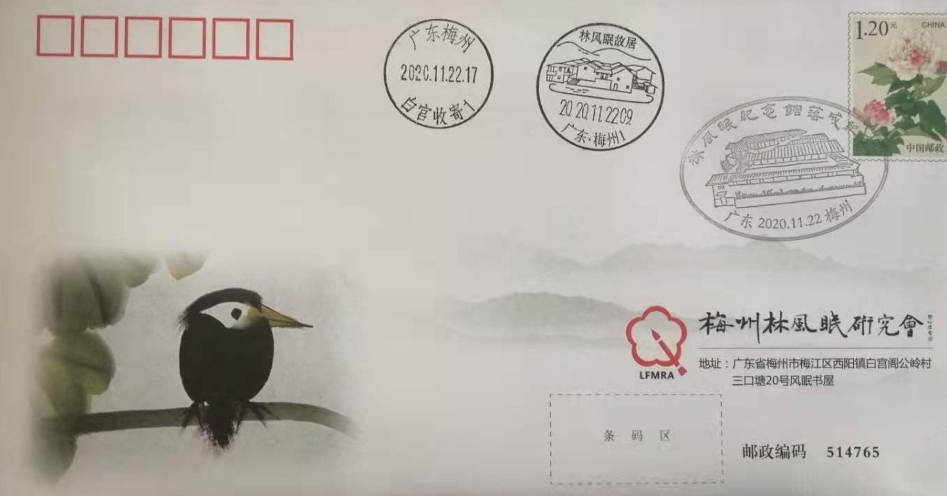 记者从梅州邮政了解到,《林风眠诞辰120周年》纪念邮折22日在我市首发。此外,梅州邮政特刻制林风眠纪念馆落成纪念戳一枚,在白宫邮政支局免费为市民加盖。