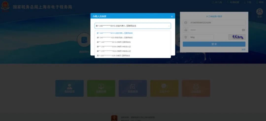 在国家税务总局上海市电子税务局登录页面,选择企业登录下方的长三角税源户,输入税号、密码、验证码后,通过实名认证登录电子税务局。