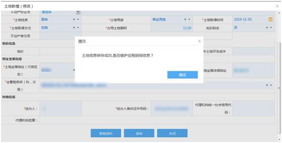 (1)点击新增土地,填写正确行政区划。