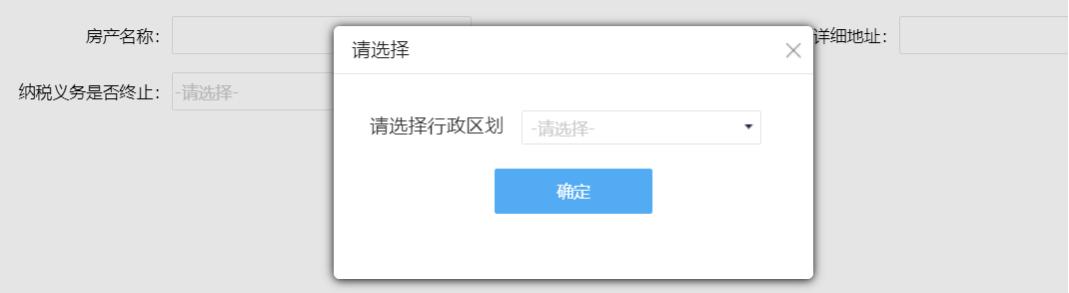 (1)点击“房产税税源明细”,点击“新增房屋”选择行政区划。