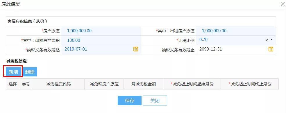 (4)点击“新增”,录入房屋应税从价信息。