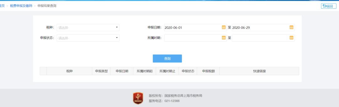 5 申报完毕后,点击“申报查询”跳转至申报结果查询页面。