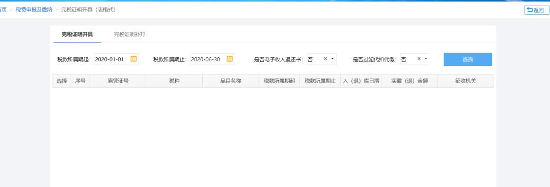 7 若需开具完税证明,则点击“开具完税证”跳转至开具完税证页面。