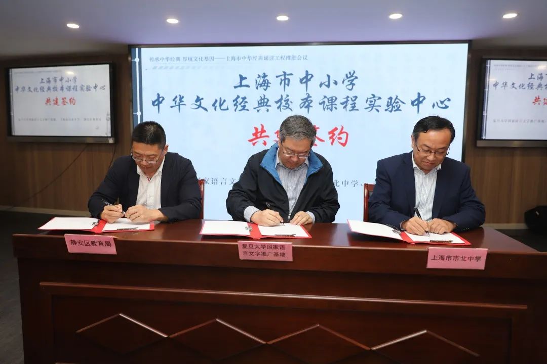 如何在校园内传承中华经典,在育人过程中厚植文化基因?在2020年11月19日召开的上海市中华经典诵读工程推进会议上,复旦大学和上海市市北中学分别通过交流发言和校本课程现场教学展示,生动体现了上海近年来在推进中华经典诵读工程上的积极成效。会议公布了上海首批20个中华经典诵写讲基地名单,上海市中小学中华文化经典校本课程实验中心在会上进行共建签约和揭牌。