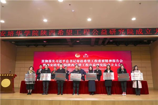为学习贯彻党的十九届五中全会精神,推动新时代陕西希望工程事业发展,11月20日上午,由共青团陕西省委、陕西省青少年发展基金会、西安培华学院等单位联合举办的贯彻习近平总书记寄语希望工程精神报告会暨西安培华学院陕西希望工程公益研究院成立仪式在西安举行。