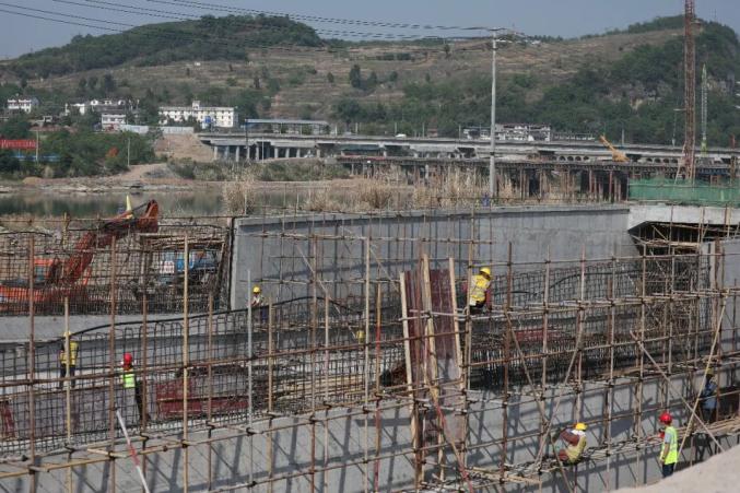 施工人员在与时间争分夺秒抢工期,