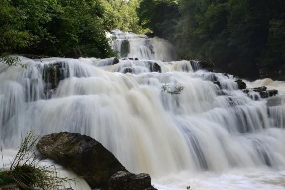 米底河,是乌江水系上的一条小支流。忽而泻过石上,忽而钻入山中,形成了千姿百态的岩溶奇观。两岸,不仅有原始杜鹃林,而且还生长着珍贵的古大稀植物。可以说眼前的百里杜鹃是一幅古树参天、珍奇暗藏、鸟鸣山悠、四季鲜花不断的山水自然风光画卷。