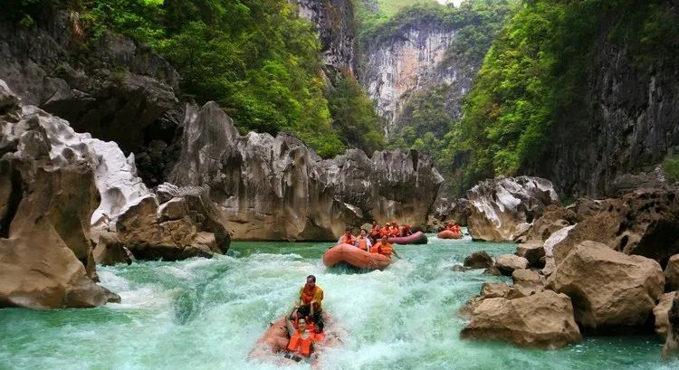 卧龙潭瀑布水春河漂流被称为“小桂林”也被称为“天下第一漂”。水春河风景区是樟江风光最为秀丽的一段,以布依族古水春寨而得名。河道两岸峭峰挺秀,纤巧玲珑,岸间古树密布,杂花纷呈。有水平如镜的峡谷,有湍流翻卷的急流险滩,景色秀丽