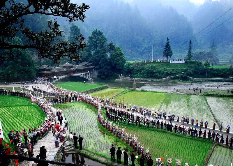 西江千户苗寨是一个保存苗族"原始生态"文化完整的地方,由十余个依山而建的自然村寨相连成片,是目前中国乃至全世界最大的苗族聚居村寨。