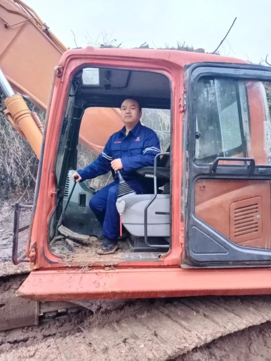 黄勋在为他的“小伙伴”打润滑油今年上半年,在施工大干现场,太平驿电站的大坝闸门下淤积大量泥沙,挖机活动受限,加之容易陷车,严重影响施工进度。黄勋主动请缨,到最危险的开挖点去,一名安全员作为他的“眼睛”,指到哪里,斗子就精准的挖到哪里。从早上6点到晚上10点,一斗一斗的把泥沙翻出来装车,原本一周的工作量,他只用了四天就完成了,很多次都错过了开饭的时间,被身边的人称之为“瘦身行动”!他还打趣的说到:“这样的行动,我值得拥有”!最终,完成开挖方量5700余方,圆满完成了泥沙清理任务,保障了抢险行动的顺利推进,被工程局评为“优秀共产党员”。