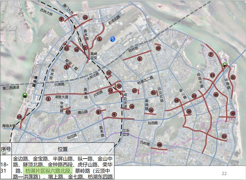 线性优化共31处,其中道路提升7处(1-7),打通道路24处(8-31)。第一批可实施9处。