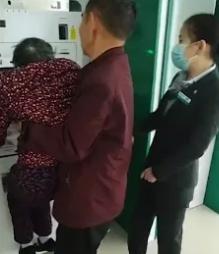 另一个在银行,为激活社保卡,一名94岁的老人被抬到银行进行人脸识别,老人膝盖弯曲,十分吃力,实在让人不忍看下去。