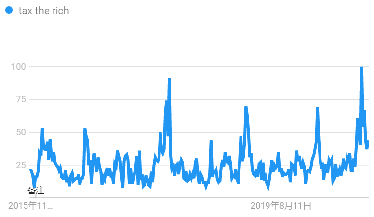 和富人们考虑如何移居国外相比,普通人的需求更为基础。搜索引擎数据显示,美国人关于社会问题的搜索热词依次为“失业、医疗保健、犯罪、收入”等,其中,“失业”的搜索量远超过其他关键词,这背后是疫情暴发以来,美国数千万人失业的残酷现实;而“给富人加税(tax the rich)”的搜索热度在大选前达到了五年来的最高点。