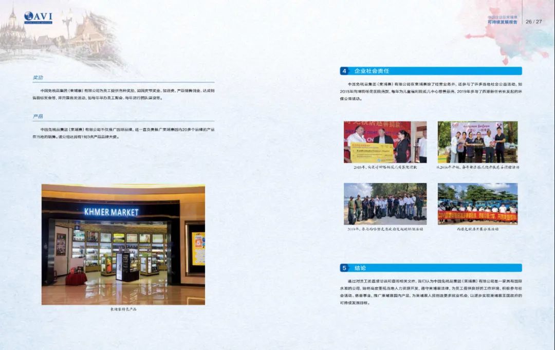 报告认为,中国免税品集团(柬埔寨)有限公司是一家具有国际水准的公司,始终高度重视当地人力资源开发,遵守柬埔寨法律,为员工提供良好的工作环境,积极参与社会慈善事业,推广柬埔寨国内产品,为柬埔寨人民创造更多就业机会。