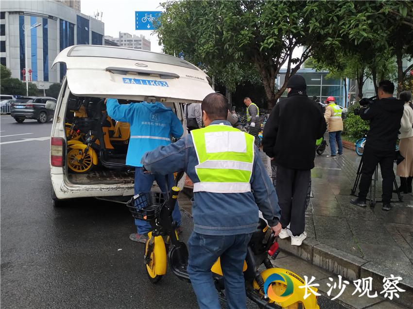图为共享出行公司运维人员正在清理回收无牌电单车(剑裘 摄)哈啰出行湖南区域公关负责人张振告诉记者,他们在长沙共投放21万辆电单车(含助力车),目前已经回收了7万辆。对于政府的清理整顿行动,他们表示完全支持。