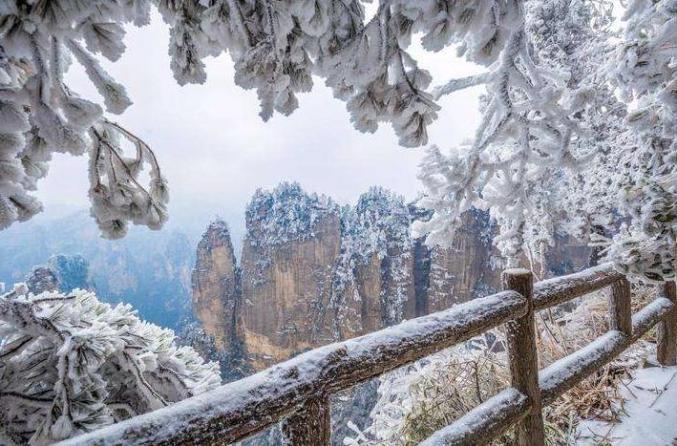 石门东山峰管理区已经零下3℃到处冰封一片