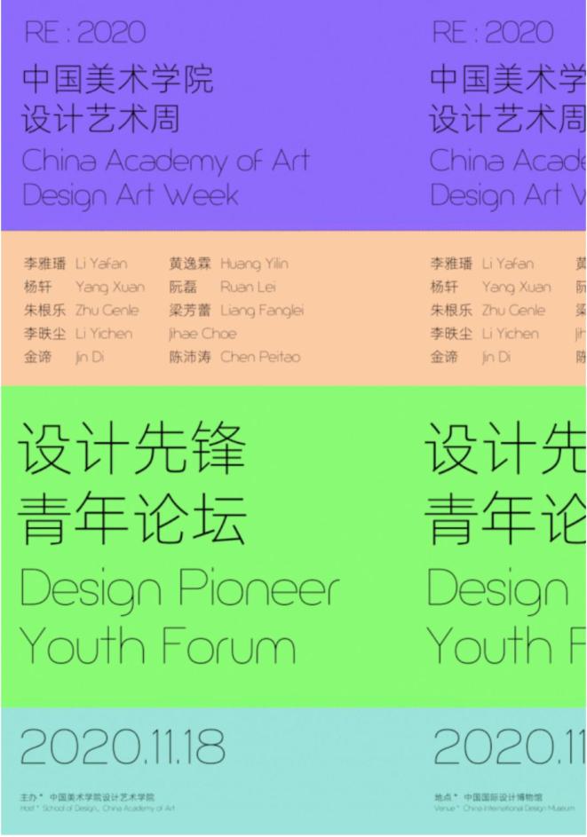 2020年11月18日,中国美术学院设计艺术周“设计先锋”青年论坛举行。来自中国美术学院、中央美术学院、鲁迅美术学院、南京艺术学院、同济大学、广州美术学院、马里兰艺术学院等高校的优秀青年代表应邀参加论坛。