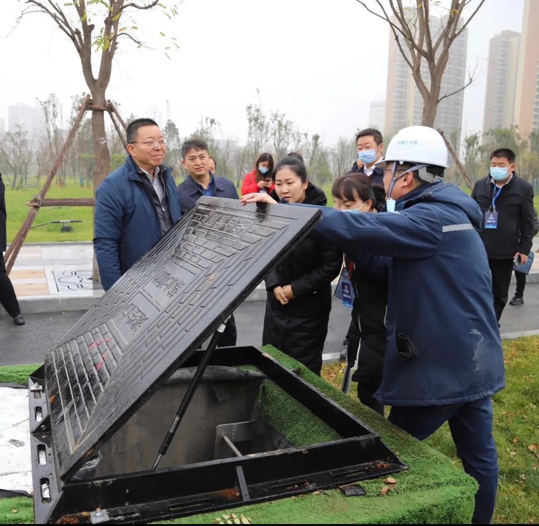 与会人员实地观摩柳亭路窨井盖治理现场和地下综合管廊现场。