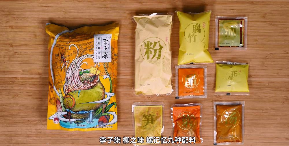 李子柒的螺蛳粉,给人的第一感觉就是配料特别丰富,分量也很大。米粉相对来说更加软糯,酸笋也更加正宗,除了酸,会有明显腌制的味道,配菜也更入味。