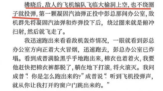 杨某在书中写道:“敌人飞机编队飞临大榆洞上空,也不绕圈就投弹。”