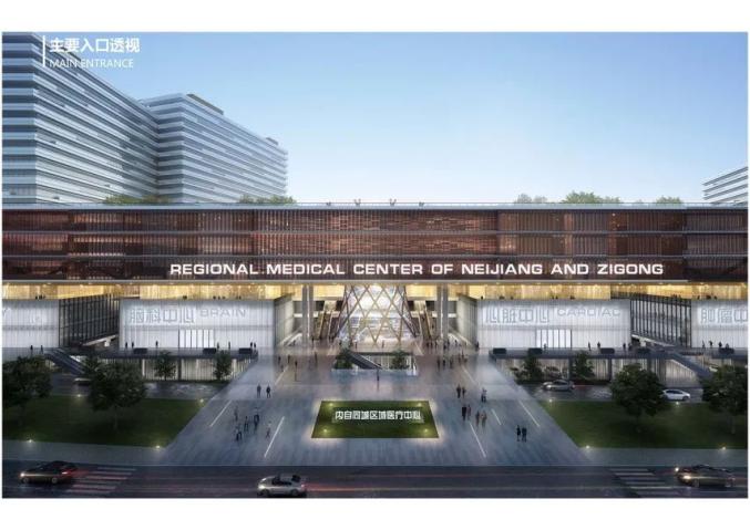 内自同城区域医疗中心项目位于东部新城,以医疗服务高地、转化医学高地、人才培养高地、智慧医疗中心、乡村和社区家庭医生签约服务指导中心“三高地、两中心”为主要内容。