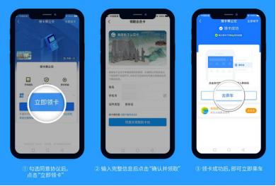 按照支付宝提示的步骤,依次点击“同意协议并领卡——实名授权认证——领卡成功”,领取“淮南电子公交卡”。