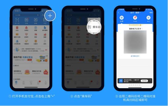 步骤一:打开支付宝主页,点击“交通出行”,点击“乘公交”,就可以自动识别淮南电子公交卡。