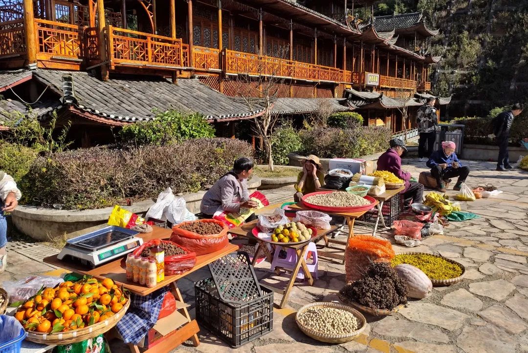 当地百姓在妥乐古银杏旅游景区摆摊设点,服务游客2016年,沪昆高铁开通,盘州迈入“高铁时代”。盘州站是成都与昆明两局集团公司的分界站,也是沪昆高铁贵州境内西向的最后一站。