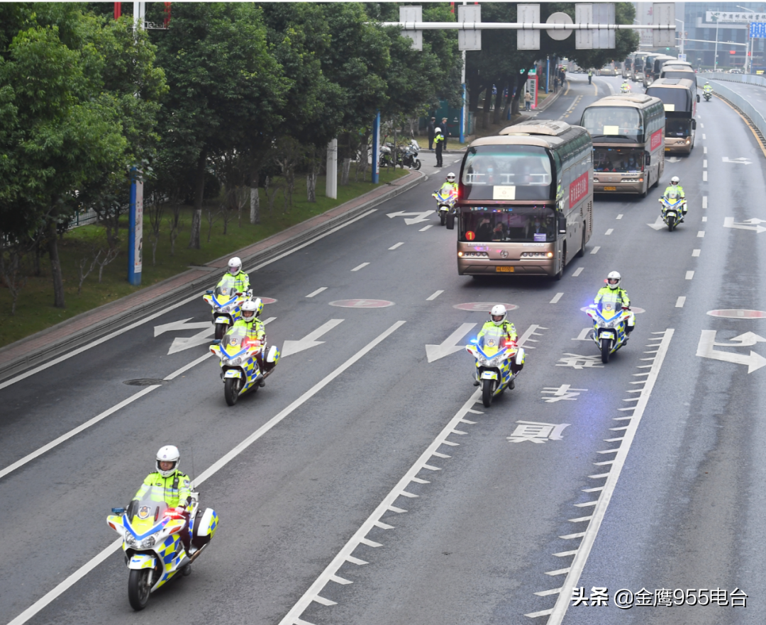 警车开道、骑警护行,英雄们一路前往湖南人民会堂。他们乘坐的车队所经之处,交警纷纷敬礼,群众驻足注目。