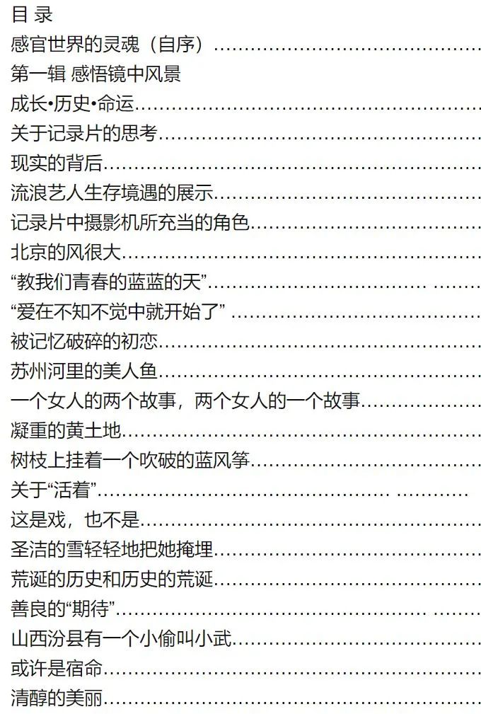 2001年夏天,在进行了大约一年的这种感悟式的电影写作之后,我发觉自己开始重复以前的文字了,尽管我努力从生命体验和观影经验里用文字的方式来安置一部新看过的电影,但却不时地怀疑此时的自己是否真诚,是否真的理解了电影,还是仅仅以自己的身份做了一次无谓的言语表达。我把这一年写的网络影评结集出版,这是我人生的第一本书《感官世界的灵魂——一个北大学生的电影手记及其它》,也算是对一年多的网络影评写作的纪念。