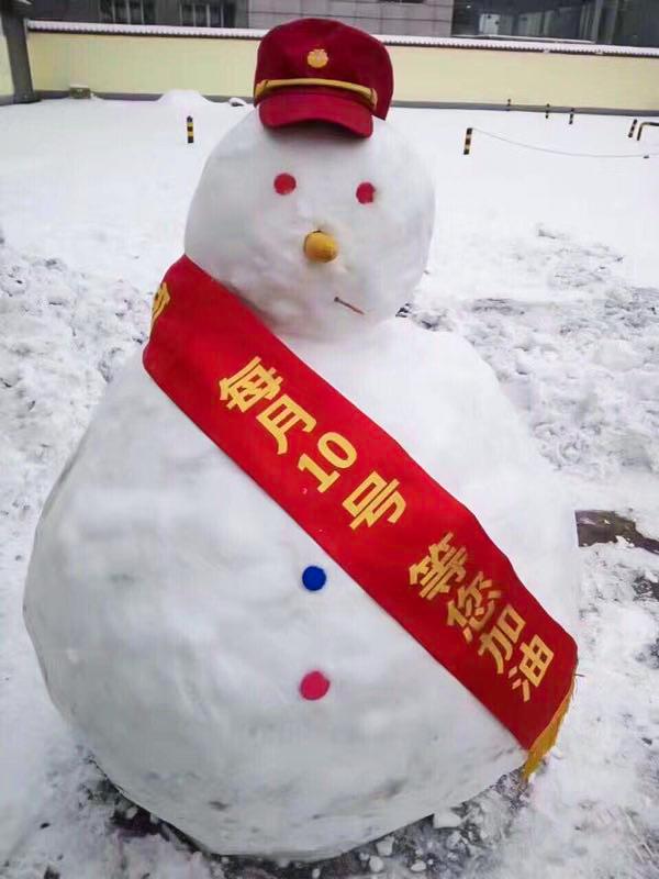 这是我在基层最快乐的一段时光,站里和我一样的年轻人比较多,冬天下雪,又正好赶上每月10日的“十惠”日,我们便堆了雪人,还给它戴上了加油站的帽子和绶带。