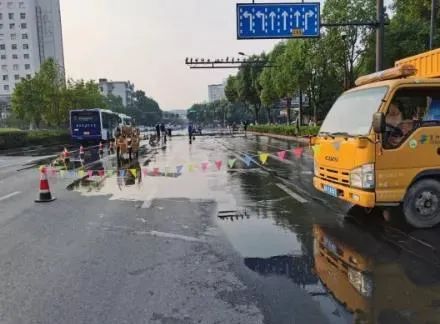 据了解,是自来水管爆裂所致,现场交警与自来水公司的抢修人员积极对接施工抢修方案。