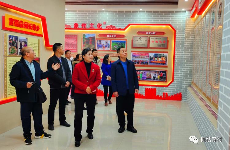 黄彩波(前中)、卓武(前右)参观政协文史馆。(罗燕丽∕摄)在当天上午的开馆活动仪式上,政协主席黄彩波表示,象州政协文史馆建在象州温泉和白石、联合名人文化旅游村和长寿文化旅游村大井村区域中,既体现了象州人杰地灵、历史悠久、文化灿烂,又便于游客参观,很有创意。她强调,要充分发挥文史馆存史、资政、团结、育人的作用,助推政协事业不断再上新台阶,努力为实现“两个一百年”的奋斗目标和中华民族伟大复兴的中国梦而努力奋斗!努力为实现“生态立县、工业强县、农业稳县、城建塑县、文化旅游兴县”五大战略而努力奋斗!努力为全面建成小康社会和振兴象州而努力奋斗!