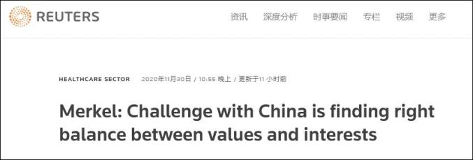 “未来几年与中国有关的挑战是,在争取我们的价值观和利益之间找到一个良好的平衡。”默克尔说。