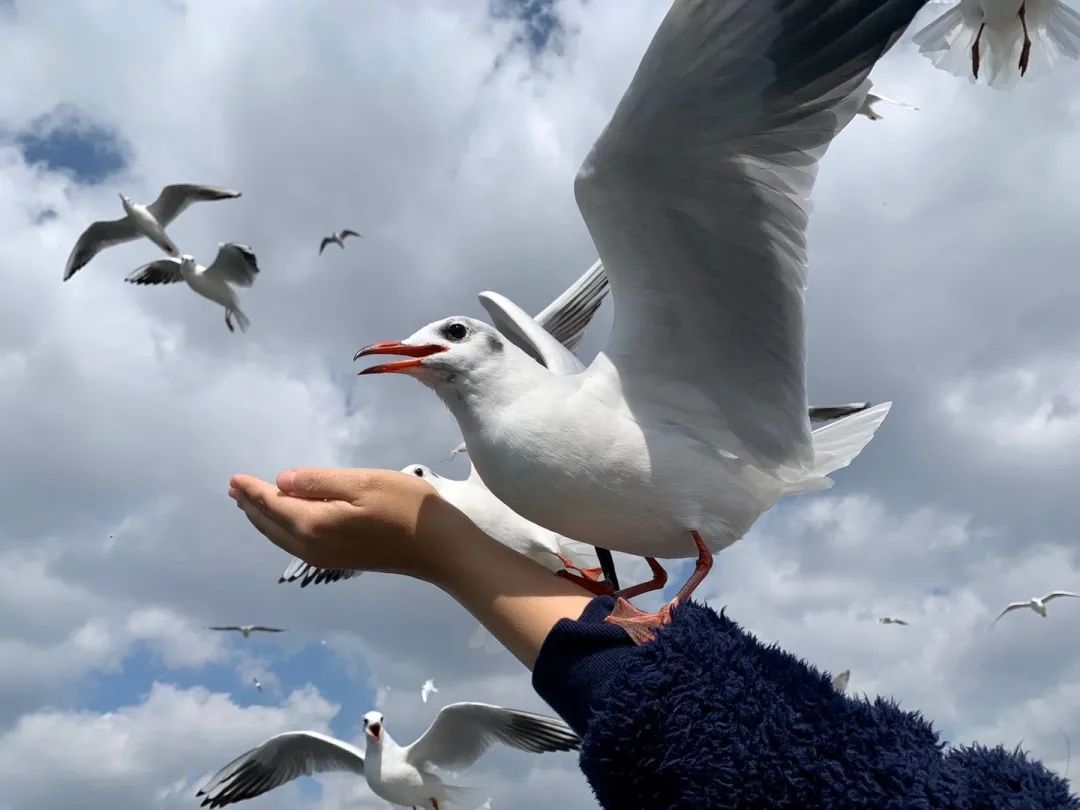 得益于昆明30多年如一日对海鸥的爱护,海鸥与人类达成了和平共处的默契,所以这些小精灵并不怕人。只要你手持食物举高,立即便会有海鸥飞掠而过手中取食,别有一番乐趣。