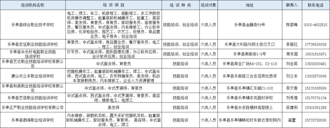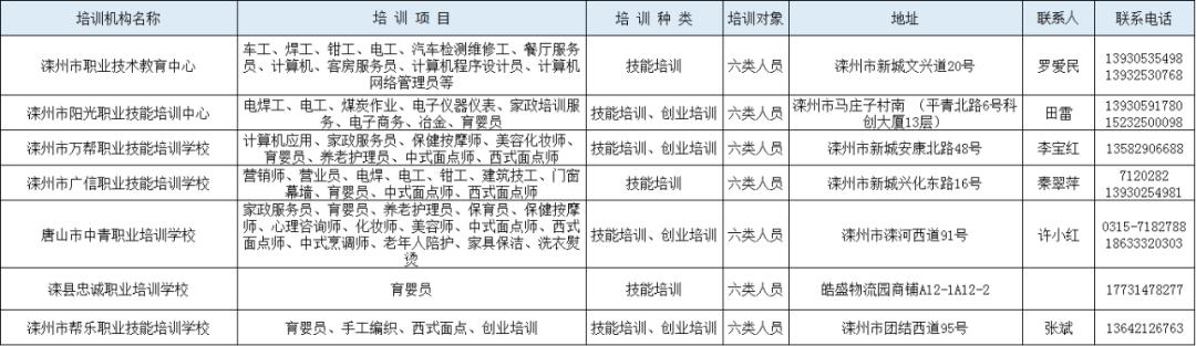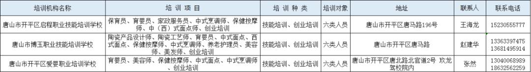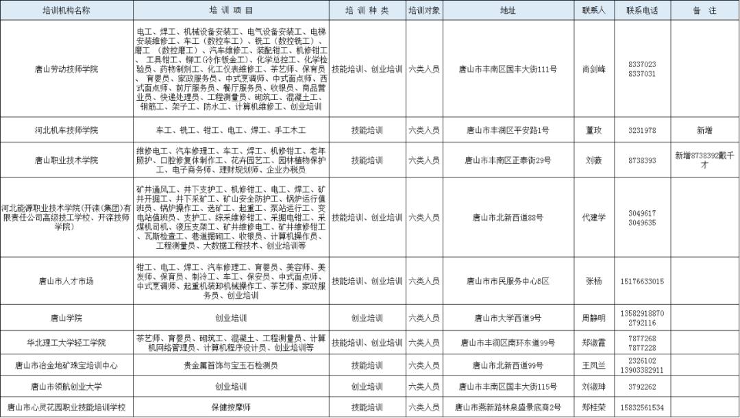 《唐山市职业技能提升行动职业培训定点机构目录》