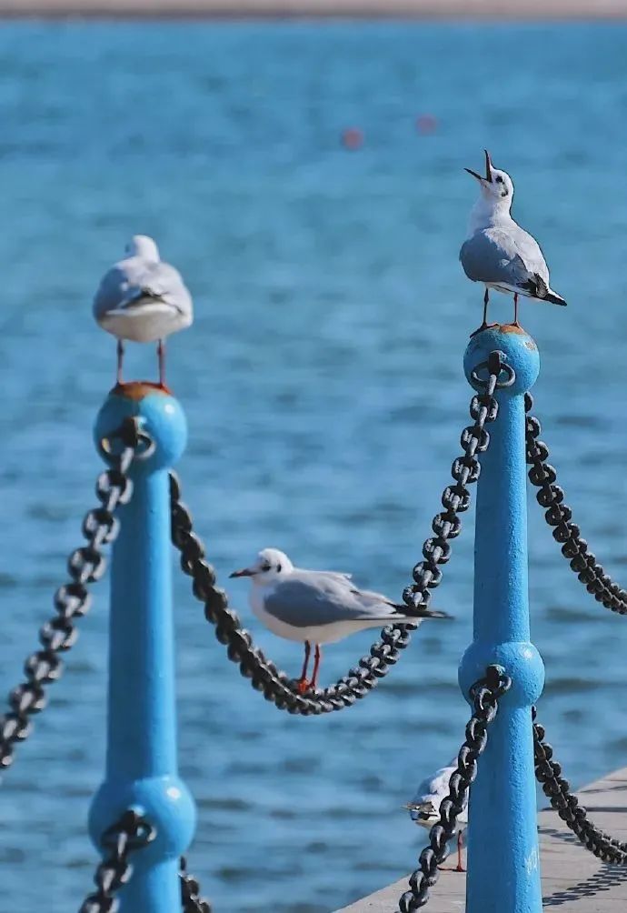大批海鸥来到青岛栈桥一带,人鸥相戏构成一道独特迷人的浪漫风景。