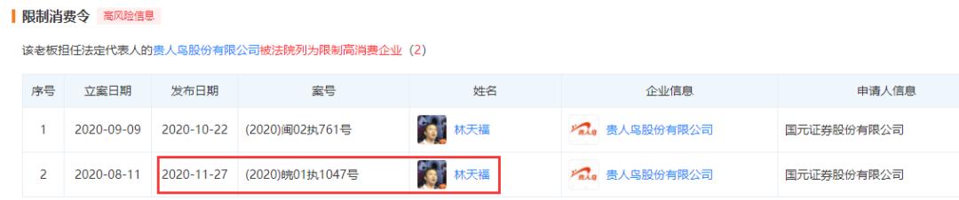 这已经是林天福年内第二次收到限制消费令了……曾经身家近200亿的泉州首富不仅把贵人鸟400亿的市值玩儿没了,自己还债务缠身,深陷官司中,令人唏嘘!合计负债34亿元