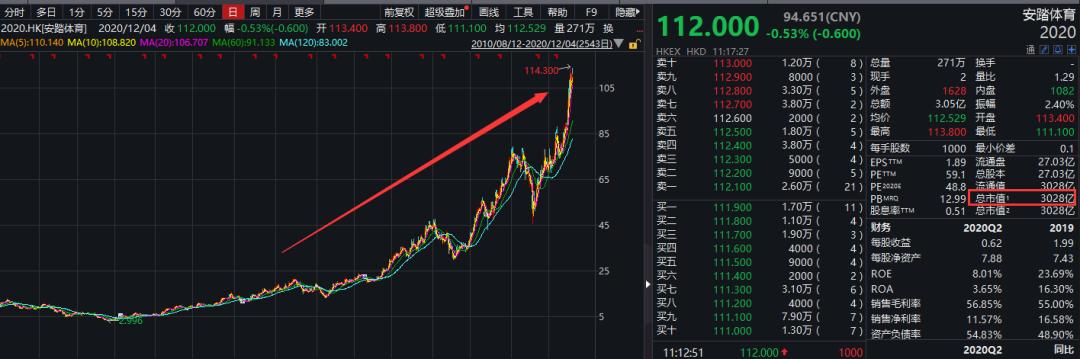 而同期,安踏体育的股价已经翻了10倍,总市值超3000亿。