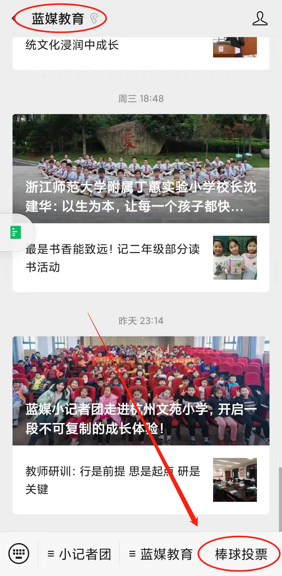 搜索“蓝媒教育”公众号或扫描下方二维码关注“蓝媒教育”公众号,进入公众号点击菜单栏“棒球投票”,点击进入投票。